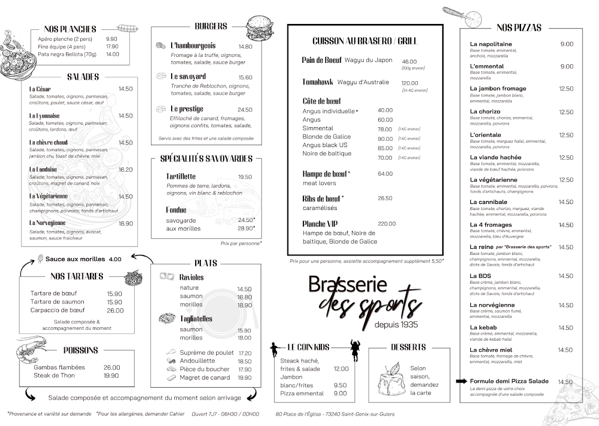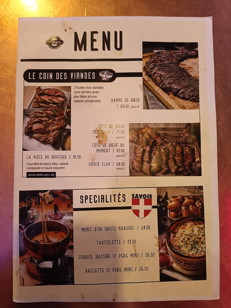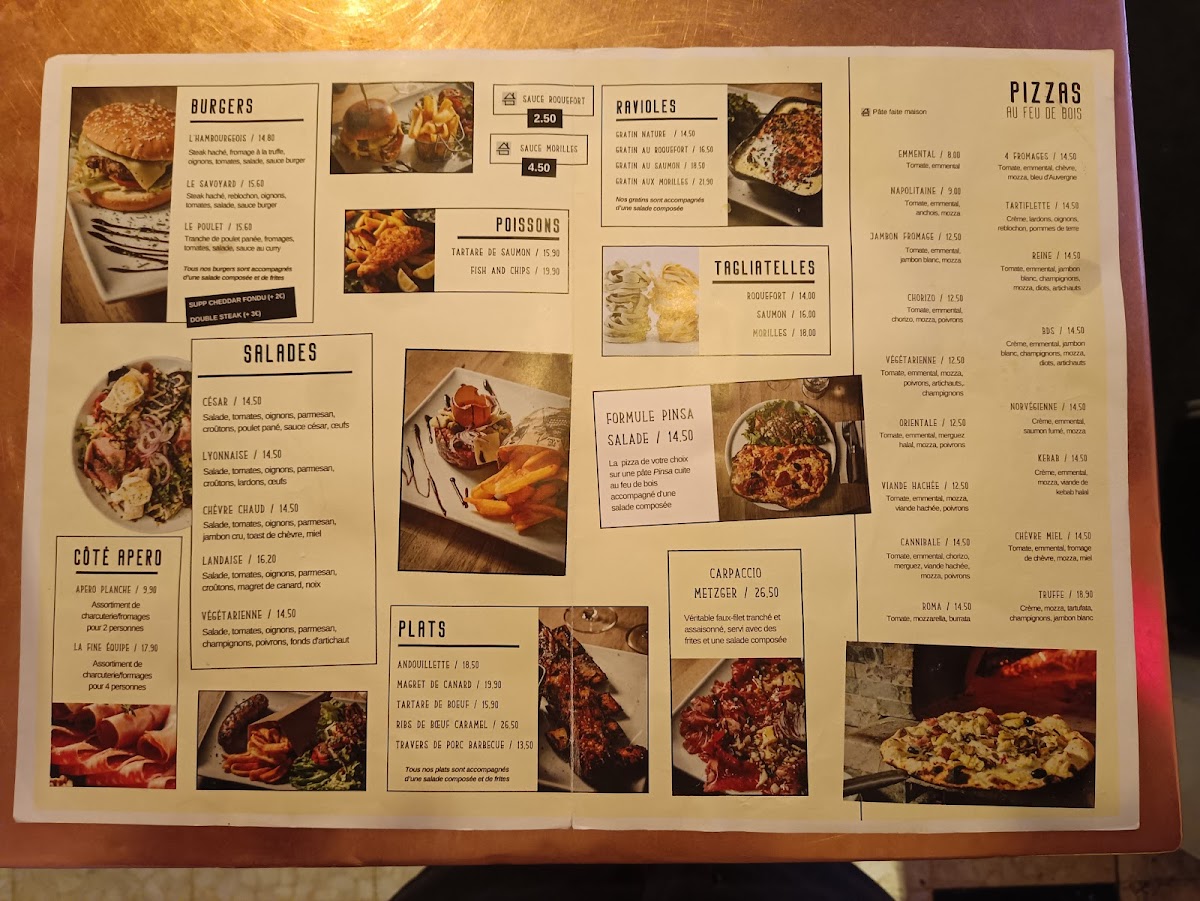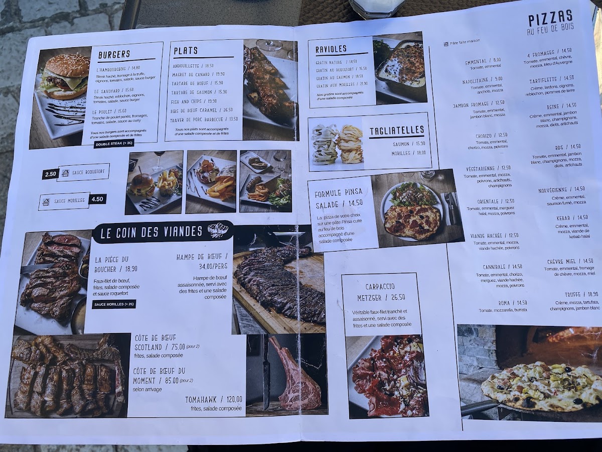 Guests can expect hearty dishes centered around quality meats like Tomahawk Black Angus and tender Ribs de Bœuf, alongside lighter options such as fresh Salade César or Tartare de Saumon. Traditional regional favorites like Tartiflette and Gratin de Raviolles aux Morilles create a warming, welcoming atmosphere that pairs naturally with the friendly, countryside vibe of the space.